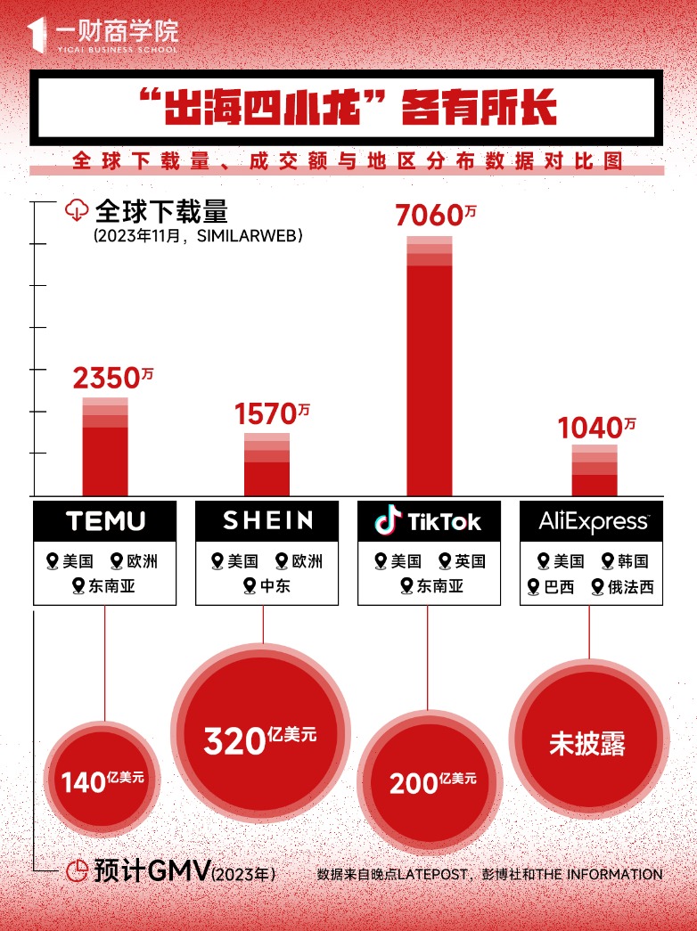 靠着比Zara还快的上线速度,Shein的市场份额也很快赶超Zara。Coresight数据显示,Shein在2022年占全球快时尚市场近五分之一的份额,超过Zara(占11%)和H&M(占20%)。2020年营收达到近100亿美元,连续8年增速超过100%。2023年Shein的GMV预计将达到320亿美元,规模位居“出海四小龙”(速卖通、Shein、Temu和TikTok Shop)之首。